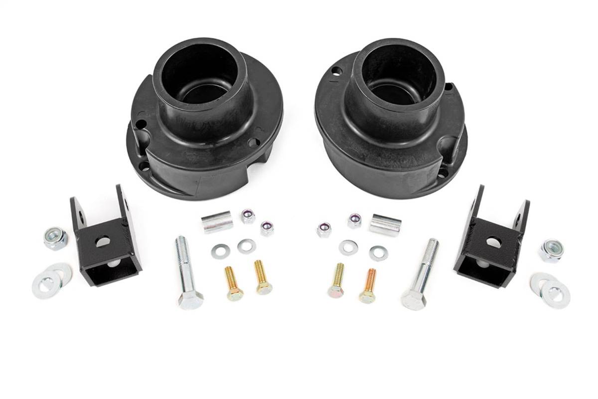 Lift, level, and smooth out your ride with Rough Countrys new and improved 2.5-inch RAM 2500/3500 Leveling Kit. Engineered to fit RAM trucks equipped with front radius arm suspension setups, this easy-to-install kit gives a big boost at an unbelievable price!Rough Countrys durable coil spring spacers have been expertly redesigned to match the factory geometry of your truck, including the angle of the coil mounts and position of the rubber isolator, which perfectly indexes both springs to eliminate any chance of coil bowing. This kit has also been upgraded to include shock extension brackets that allow you to reuse your factory shocks at the optimum angle for your new lifted truck.This kit also features a lightning fast, 100% bolt-on installation process that couldnt be easier! Includes Rough Countrys Lifetime Replacement Warranty.