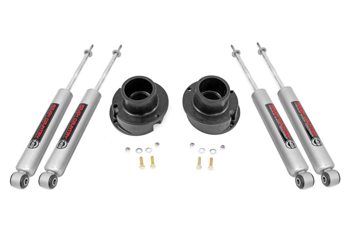 Lift, level, and smooth out your ride with Rough Countrys new and improved 2.5-inch RAM 2500/3500 Leveling Kit. Engineered to fit RAM trucks equipped with front radius arm suspension setups, this easy-to-install kit gives a big boost at an unbelievable price! Rough Countrys durable coil spring spacers have been expertly redesigned to match the factory geometry of your truck, including the angle of the coil mounts and position of the rubber isolator, which perfectly indexes both springs to eliminate any chance of coil bowing. This kit also includes a pair of front N3 Shock Absorbers for better ride quality both on and off-road. Rough Countrys N3 shocks are nitrogen charged, featuring 10-Stage Velocity Sensitive Valving for a smooth ride no matter what the terrain. This kit also features a lightning fast, 100% bolt-on installation process that couldnt be easier or less invasive to your new vehicle. Includes Rough Countrys Lifetime Replacement Warranty.