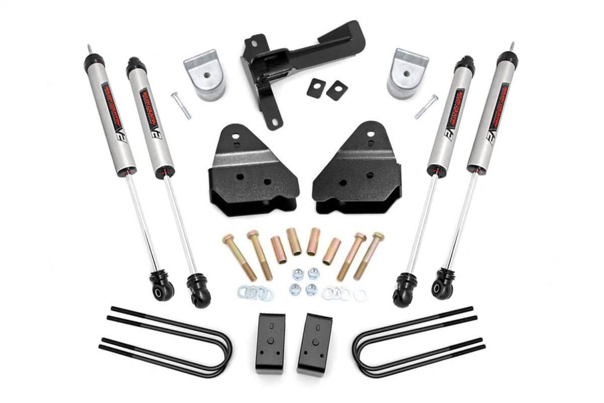 Give your 17-20 Ford Super Duty an impressive upgrade, front to back with Rough Countrys 3" Suspension Lift Kit! This easy-to-install lift kit raises the front of your vehicle to be equal height with the rear for a leveled, better-than-stock look that gives an improved ride height and more aggressive appearance. This kit features a set of front, lifted coil springs spacers allowing you gain additional ride height without sacrificing ride quality or performance. A set of radius arm drop brackets as well as a track bar drop bracket are provided to keep everything at optimum angles for a factory-like ride, even after lifting. A set of Rough Countrys premium N3 shocks are also included. These fine tuned 10-stage variable high-pressure Nitrogen charged shocks offer a fantastic blend of off-road action and smooth highway ride quality. With a durable 18mm spring-loaded piston rod and faster-cooling 54mm shock body. Get the wheels you want! Rough Countrys 3" Suspension Lift Kit comes with everything you need to fit up to a 35" tire with proper wheel backspacing. Best of all, Rough Countrys 3" Suspension Lift Kit is backed by our Lifetime Replacement Warranty.