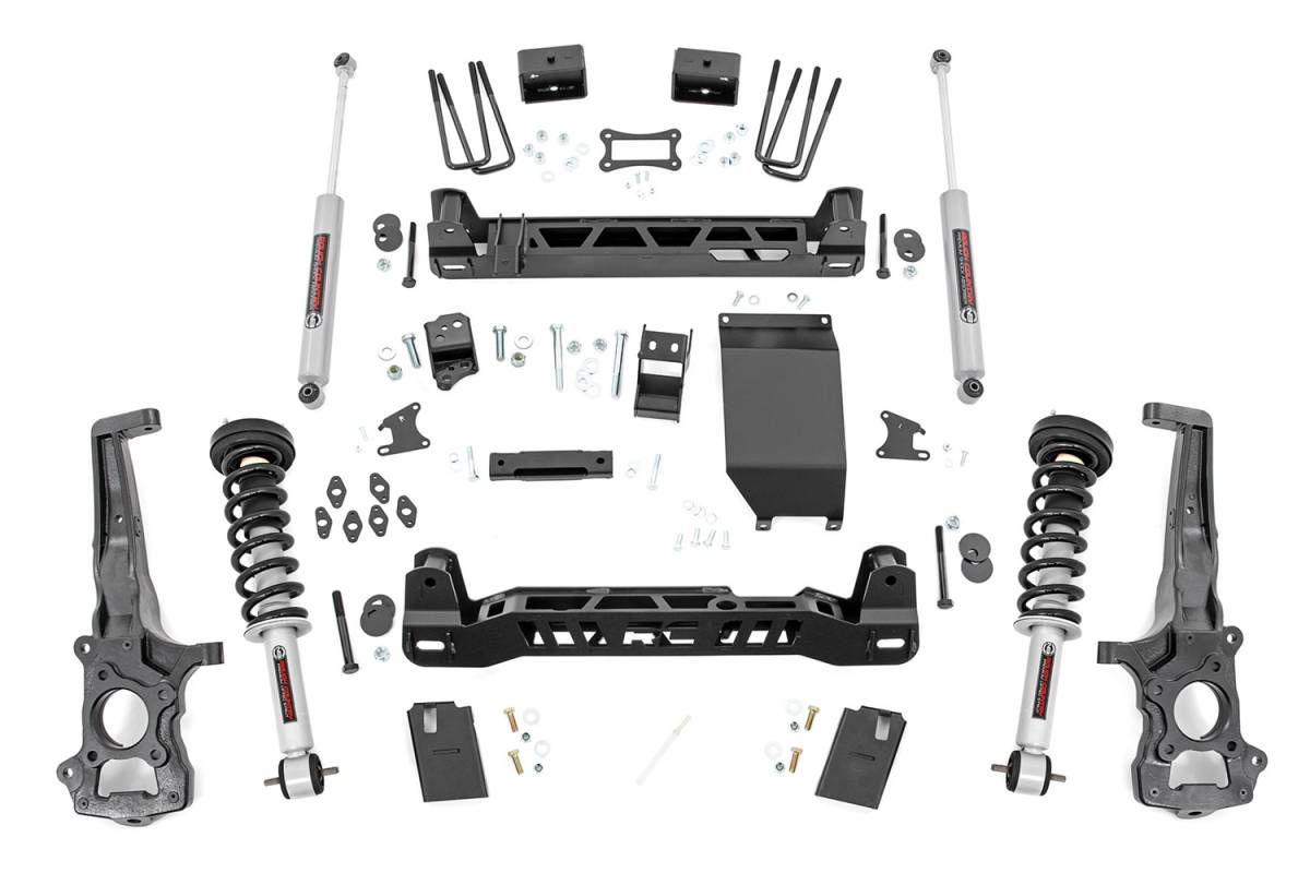 Transform your Ford Ranger from mid-size to masterpiece with Rough Countrys 6-inch Lift Kit! This kit includes everything you need for a monster makeover of your rig. A set of beefy front and rear crossmembers keep everything in line, while a durable skid plate offers unbridled protection against off-road obstacles. A set of lifted, one-piece cast knuckles and rear, fabricated lift blocks offer plenty of ride height to run larger tires and wheels!This kit also features Rough Countrys Nitrogen-charged N3 shocks. These 10-stage variable valving, high-pressure Nitrogen charged shocks offer a fantastic blend of off-road action and smooth highway ride quality.Rough Countrys Ford Ranger kit is engineered to preserve the smooth, factory like ride while upgrading your vehicles performance and off-road potential. Set your Ranger apart from the pack with this total transformation for your truck! Includes a Lifetime Replacement Guarantee.