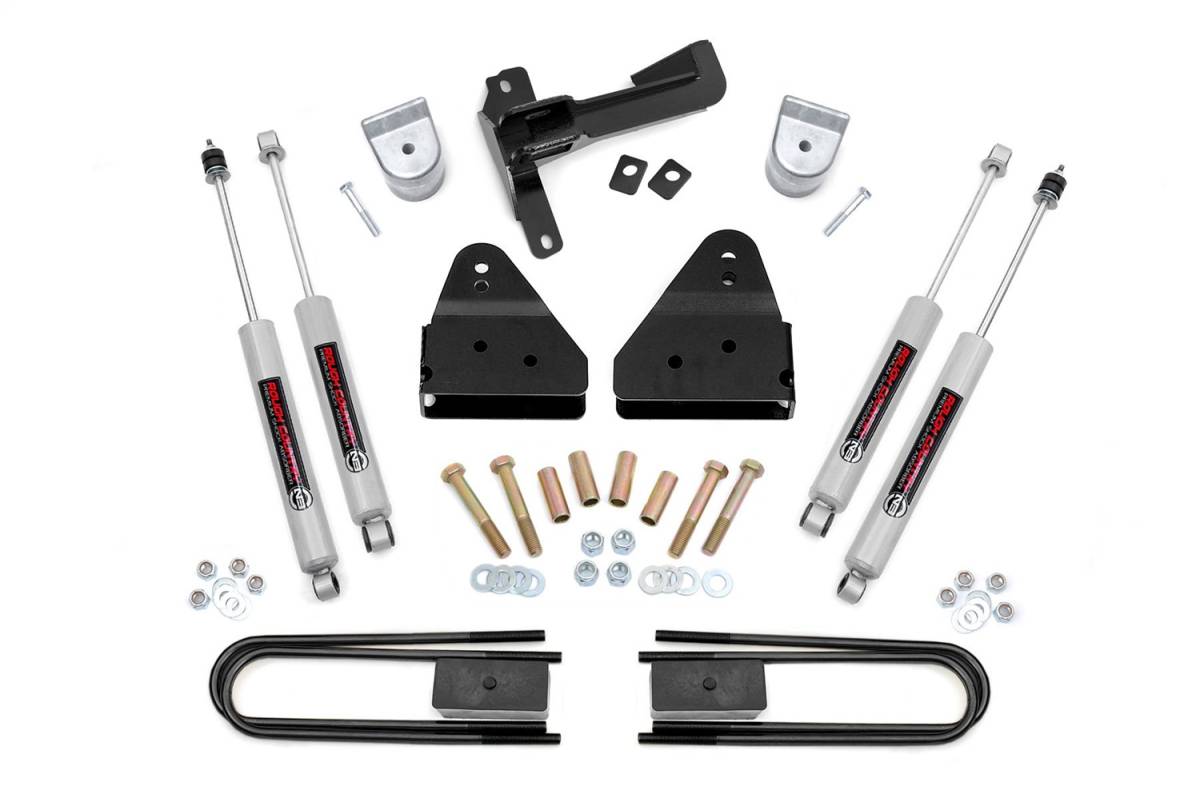 Give your 08-10 Ford Super Duty an impressive upgrade, front to back with Rough Countrys 3 in. Ford Series Suspension Lift Kit! This easy-to-install lift kit raises the front of your vehicle to be equal height with the rear for a leveled, better-than-stock look that gives an improved ride height and more aggressive appearance. This kit features a set of front, coil spring spacers allowing you gain additional ride height without sacrificing ride quality or performance. A set of radius arm drop brackets as well as a track bar drop bracket are provided to keep everything at optimum angles for a factory-like ride, even after lifting. A set of Rough Countrys premium N3 shocks are also included. These fine tuned 10-stage variable high-pressure Nitrogen charged shocks offer a fantastic blend of off-road action and smooth highway ride quality. With a durable 18mm spring-loaded piston rod and faster-cooling 54mm shock body. Get the wheels you want! Rough Countrys 3 in. Suspension Lift Kit comes with everything you need to fit up to a 35 in. tire with proper wheel backspacing. Best of all, Rough Countrys 3 in. Lift Kit is backed by our Lifetime Replacement Warranty.
