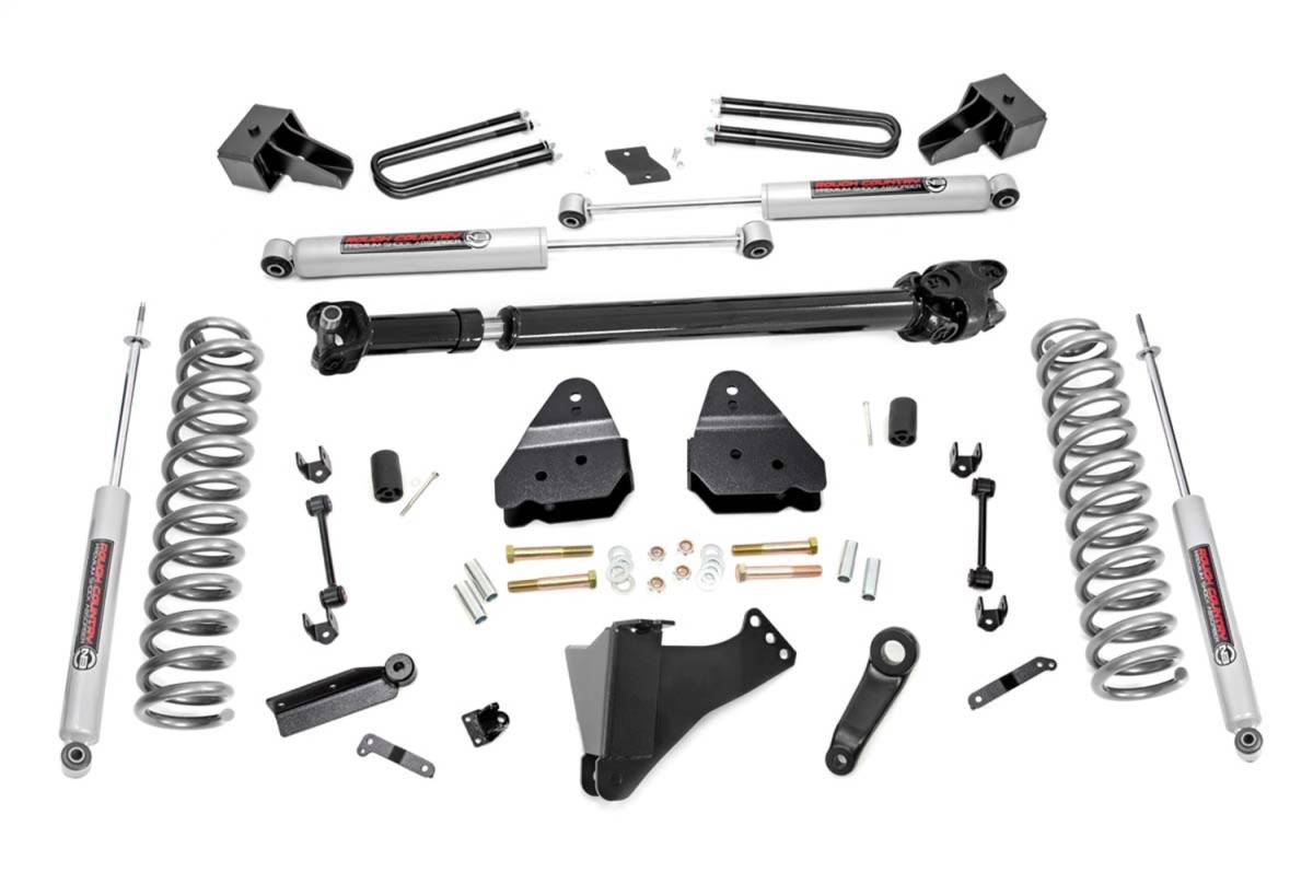 Take your truck to new heights with Rough Countrys 4.5-inch Suspension Lift! This all-inclusive kit comes with everything you need for a total trasnformation of your truck. Run up to 37in tires while preserving the smooth, factory ride quality with this impressive upgrade. This kit includes a set of lifted coil springs and ultra-durable, fabricated anti-wrap rear blocks that prevent binding and axle wrap. Best of all, this kit comes with your choice of Rough Countrys N3, V2 Monotube, or Vertex Adjustable Reservoir shocks! Includes Rough Countrys Lifetime Replacement Warranty