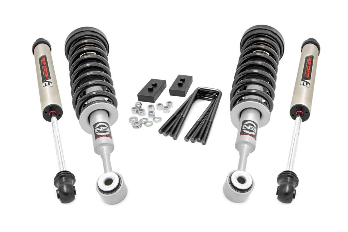 Level your vehicle from front to rear while preserving the smooth, factory ride quality with Rough Countrys N3 Strut Leveling Kit! This easy-to-install kit boosts the front end, removing the unsightly factory rake and giving your truck increased ground clearance and aggressive good looks.Rough Countrys N3 Struts feature a massive bore and chrome plated piston rod with leak-proof piston seal for exceptional durability during off-road use. Each strut is tuned to OEM specs and includes a variable dampening system for outstanding handling and control on all road conditions. These struts offer improved tire contact with the road for increased stability and performance. Each lifted strut is a full replacement of your OEM equipment, engineered for a pain-free installation. Simply remove the factory strut and replace for an instant upgrade! No complicated strut disassembly required!