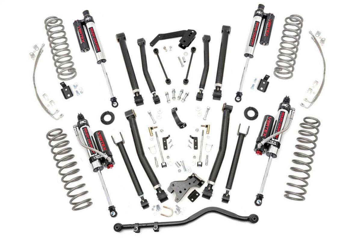 Give your Jeep a total transformation with Rough Countrys 6in X-Series Suspension Lift. This all-inclusive kit comes with everything you need to give your vehicle aggressive good looks and improved off-road performance! This kit features a set of front and rear upper and lower adjustable control arms with a high-clearance design, allowing you to dial in the exact ride you desire! Each kit also comes with lifted coil springs and coil correction plates, providing lift height and impeccable vibration dampening on any terrain. For those who are serious about flexing, crawling, and pushing your Jeep to the limits, this kit features an upgraded Forged Adjustable Track Bar. Made of forged steel, this 16lb Track Bar boast a beefy construction that will dwarf stock equipment. Easy to install and fully adjustable on the vehicle. Best of all, this kit features Rough Countrys premium N3 shocks! These 10-stage variable valving, high-pressure Nitrogen charged shocks offer a fantastic blend of off-road action and smooth highway ride quality. With a durable 18mm spring-loaded piston rod and faster-cooling 54mm shock body, this shock offers up to 36kN Tensile Strength for a long lifespan of impressive vibration dampening. Features natural rubber bushings and an eye-catching metallic silver paint.