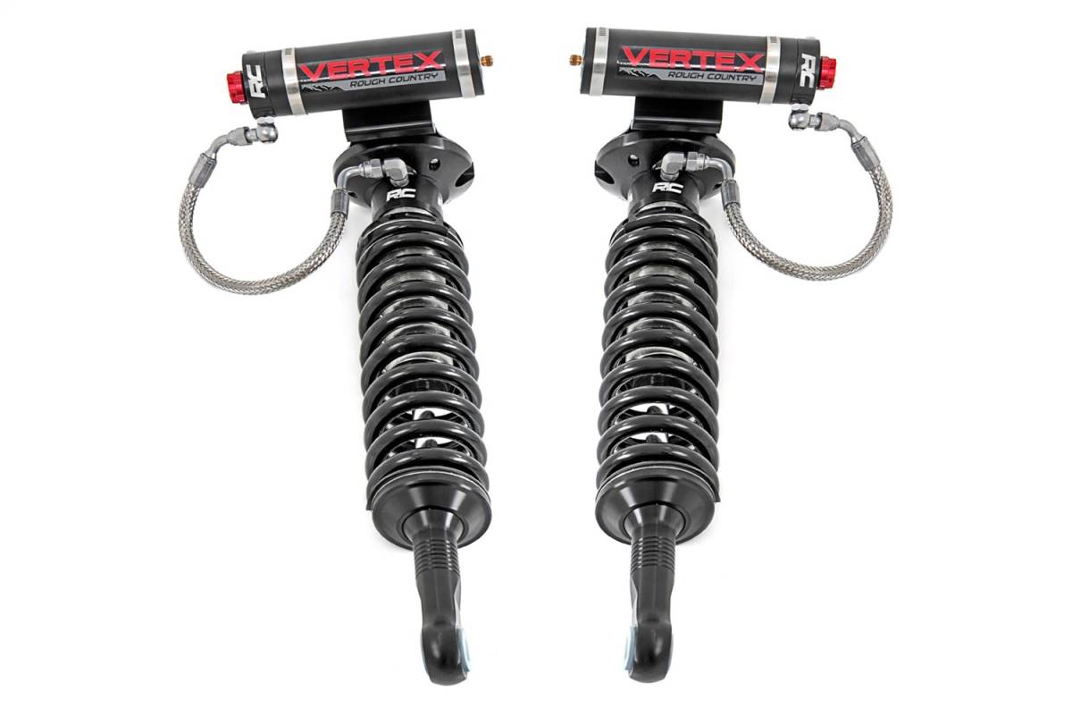 Behold: The pinnacle of off-road performance and smooth ride quality in an affordable package has arrived with Rough Country's 2.5 Vertex 8-Stage Adjustable Reservoir Shocks. These high-performance reservoir shocks offer an elite ride-quality in every situation you face, with an 8-stage adjustable damping system that lets you perfectly dial-in your ride for whatever lies ahead. Whether you want a smooth ride for city streets or the ultimate damping for off-road mayhem, a quick spin of the dial lets you adjust each shock to the exact performance specifications you desire. Rough Country's Nitrogen-charged Vertex Shocks feature a monotube design with an external reservoir for increased oil capacity and damping sensitivity. Each shock features a massive 2.5in diameter piston and a high-flow 22mm chrome hardened piston rod that simply dwarfs the competition. When it comes to investing in a high-end shock, you'll be pleased to find that Rough Country's 2.5in piston design is beefier and offers an impressive 56% greater fluid capacity than the average reservoir shock. A 3-stage, fortified seal system ensures your Vertex shocks keep kicking while the beautifully designed honed steel body offers a long lifespan of reliable performance and killer good looks. This shock is designed to be a true eye-catcher, with a beautiful silver finish, laser-etched RC logo, matching "Vertex" decals, and CNC-machined Billet Aluminum accents. Rear shocks feature a durable bracket system with laser-etched logo and a premium braided steel reservoir line. Includes an Industry-leading 3-year Warranty!
