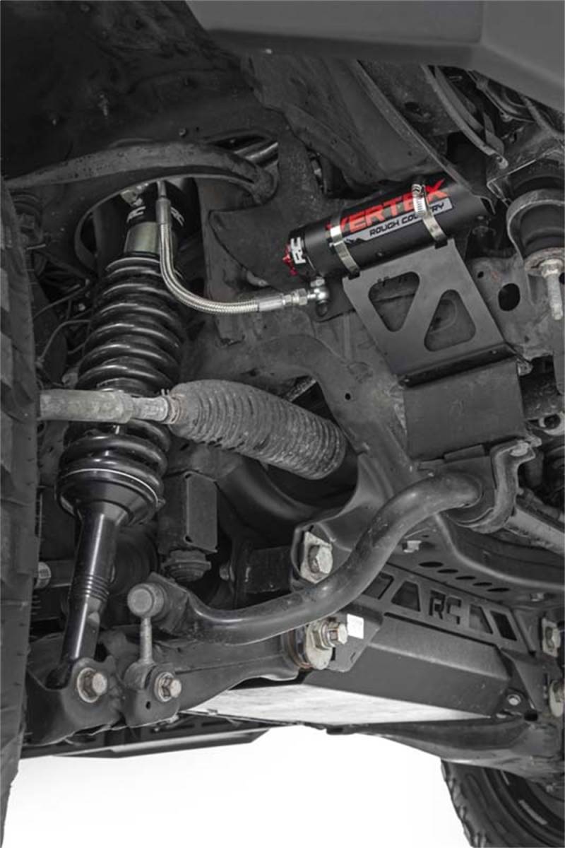 Youll never look at a Tundra the same way after installing Rough Countrys 6-inch Toyota Tundra kit. This all-inclusive kit is a total transformation for your truck, with durable lifted knuckles, protective skid plate, and all the brackets and hardware needed to set your truck to a factory-like geometry while providing additional ground clearance. The beefy front crossmember features a high-clearance design to help traverse off-road obstacles with no hang-ups.Run larger wheels and tires while giving your truck a one-of-a-kind look and exceptional off-road performance. This kit affords your truck an aggressive appearance and a higher profile that is sure to demand attention. This kit includes Rough Countrys Adjustable Reservoir Vertex Shocks for the ultimate balance in highway ride quality and off-road vibration dampening. Includes Rough Countrys Lifetime Replacement Guarantee.