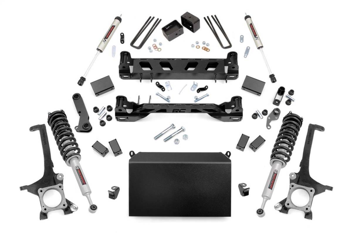Youll never look at a Tundra the same way after installing Rough Countrys 6-inch Toyota Tundra kit. This all-inclusive kit is a total transformation for your truck, with durable lifted knuckles, protective skid plate, and all the brackets and hardware needed to set your truck to a factory-like geometry while providing additional ground clearance. The beefy front crossmember features a high-clearance design to help traverse off-road obstacles with no hang-ups.Run larger wheels and tires while giving your truck a one-of-a-kind look and exceptional off-road performance. This kit affords your truck an aggressive appearance and a higher profile that is sure to demand attention. This kit includes Rough Countrys Nitrogen-charged N3 Shocks for the ultimate balance in highway ride quality and off-road vibration dampening. Includes Rough Countrys Lifetime Replacement Guarantee.