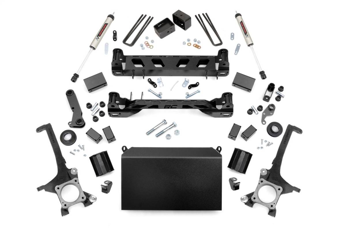 Take your Toyota Tundra to the next level with Rough Countrys 6in Suspension Lift for 07 and up models. With heavy-duty components and a high-clearance design, this kit offers aggressive looks, unparalleled off-road performance, and enough ride height to run up to 35in tires.Instantly gain a meaner lifted and level stance with high-quality equipment thats made to handle the hazards of high-performance while withstanding the test of time. A set of durable lifted knuckles, high-clearance front and rear crossmembers, upper strut spacers, and long-lasting, fabricated rear blocks give you plenty of lift and uncompromised toughness.This all-inclusive kit features everything you need to take your Tundra off the tread and through the trenches; featuring steering stops, brake line brackets, differential drop brackets, sway-bar drop brackets, and anything else one would need to keep everything working at optimum angles after lifting. Best of all, you can get up and running with Rough Countrys 6in Toyota Tundra Lift at a price that wont break the bank!