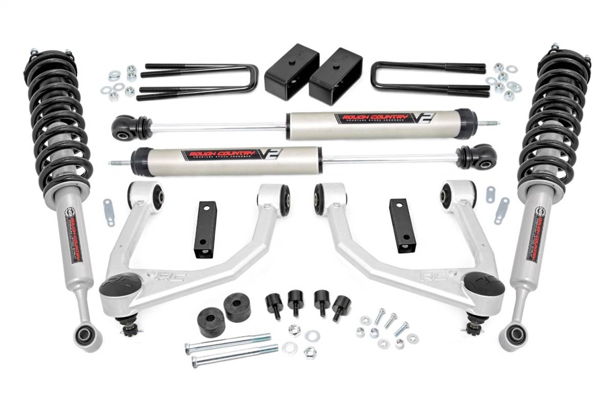 Rough Countrys 3.5in Bolt-On Kit offers easy installation and aggressive good looks at an incredible value. Take your truck to new heights with this excellent option for 07-17 Tundra pickups.This kit features a set of high-quality, tubular Upper Control Arms designed to make alignment adjustments easier and Clevite rubber bushings for enhanced durability. These arms are designed to promote a factory-like geometry by keeping the ball joint at optimum angles after lifting. This design allows for an improved, greater range of motion from the ball-joint, with less stress, wear and tear.Rough Countrys 3.5-inch Bolt-On Kit features V2 Monotube Nitrogen-charged shocks, giving your truck incredible ride-quality both on and off-road. Also included are a set of durable loaded struts and fabricated rear blocks to provide lift height from front to rear. Once installed, this kit gives your truck plenty of ride height for larger tires while offering a clean, level look from front to rear.This all-inclusive kit comes with everything you need, and installation is a piece of cake compared to other kits on the market! Featuring a 100% bolt-on installation process that requires zero cutting or drilling, this kit can be installed using common tools in a home garage, and allows the truck to be returned to stock at any time if so desired. Best of all this kit features Rough Countrys Lifetime Replacement Warranty.