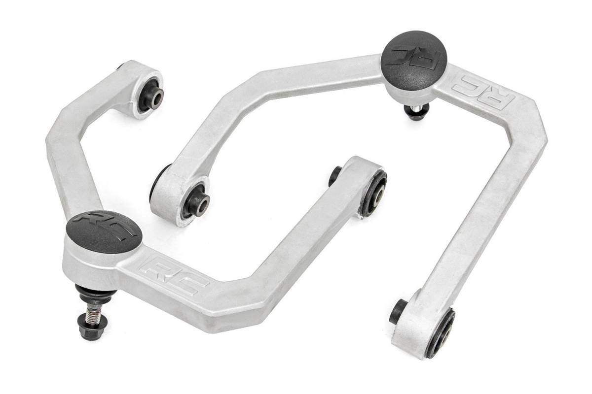 Take your truck to the next level with Rough Country's most durable Upper Control Arm to date! Rough Country's Forged Upper Control Arms feature a solid light weight, 1-piece design made of forged aluminum for superior strength and durability. This forged design outperforms all other types of arm construction, with no welding weak spots that could bend or break. Rough Country's Forged Upper Control Arms feature POM ball joints for a greater range of motion offering more wheel articulation than standard or OE replacements. These ball joints feature a Polyoxymethylene ball race with an extremely low coefficient of friction for longer life, and a larger ball diameter to improve range of motion with a maintenance free design. Each ball joint is fully greaseable. Rough Country's Forged Upper Control Arms also feature Clevite OE style rubber bushings for superior quality and durability.