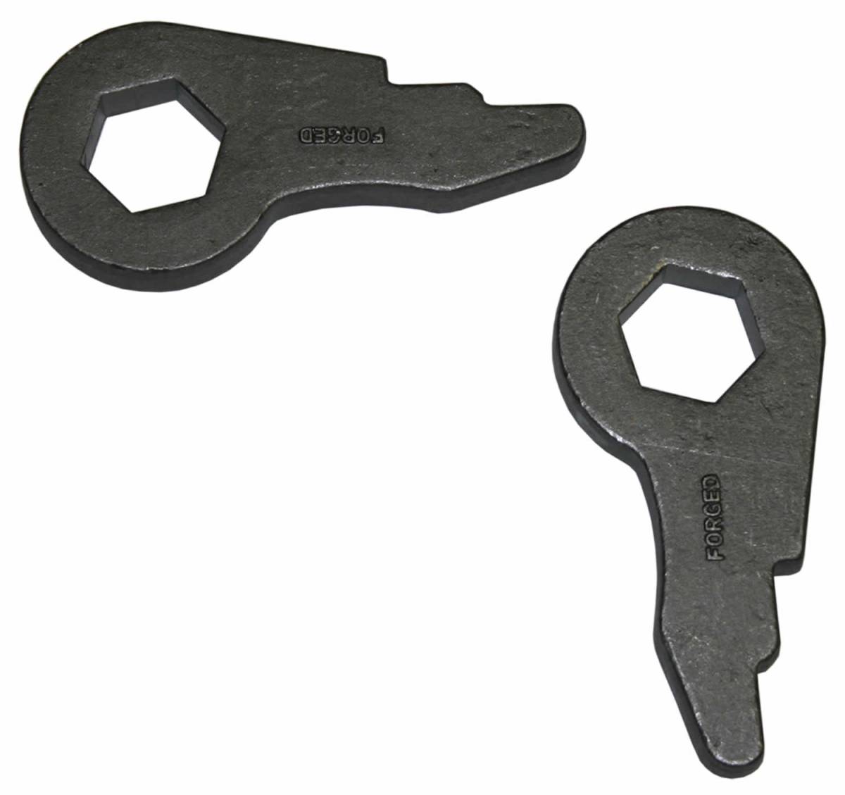 Forged torsion key kits consist of a set of re-engineered forged torsion adjustment keys. This design levels out the front of all torsion bar-equipped 2wd and 4wd trucks and SUVs without compromising the factory ride and allows for up to 33 inch tall tires. These Skyjacker torsion keys use superior manufacturing, materials and tolerances in order to increase the strength of these torsion keys. These tight tolerances increase the surface area contact between the torsion key and bar, increasing the strength of the overall design and improving functionality. Forged the same as OE to assure durability and longevity, not cast or machined.