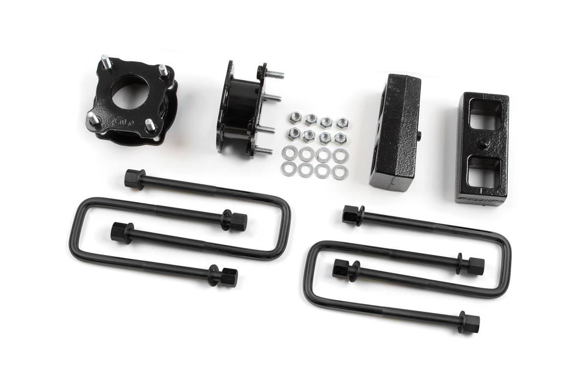 This 3" lift is the answer to clear those 33" tires. This front spacer kit is easy to install and no strut compressor or disassembly of the strut is required. These strut spacers will lift your truck while still maintaining the factory ride quality. The rear is lifted with a 2" block and u-bolt kit to keep some of the factory rake.