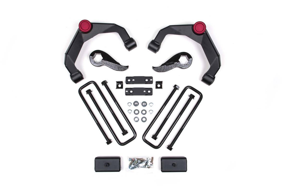 Take your new HD to the next level with the 3" Adventure Series Lift Kit from Zone Offroad. Engineered for easy bolt on fitment and improved travel, these 3? Adventure Series Lift Kits bridge that gap between an entry level leveling kit and full IFS lift system offering next level performance without the cost and extensive installation. The heart of this new system is a pair of heavy duty replacement upper control arms (UCAs) designed to improve range of motion for more suspension travel when wheeling in rough terrain. These new control arms dwarf the factory units and are built from high strnegth steel, boxed and fully welded with CNC-machined bushing and ball joint cups repositioned to operate in the neutral position at 3? of lift. They use OE durometer rubber bushings and greaseable OE-style heavy duty ball joints for quiet, reliable operation and superior corrosion resistance to uniball style control arms. Along with the arms, a pair of reindexed cast steel torsion bar keys are supplied up front to lift vehicle. Zone Offroad includes a small differential relocation kit (4WD models only) to correct CV axle operating angles without effecting ground clearance. The sway bar operating angle is corrected with the use of a pair of relocation brackets allowing for full droop of the suspension and proper clearance. In the rear a 2? block and u-bolt kit is used to create a level to slightly tail high stance. Rounding out the kit are a set of Nitro gas or FOX adventure series IFP gas shocks at all 4 corners for a smooth ride and impressive performance across any terrain. Take your late model GM 2500HD to the next level with Zone Offroad!
