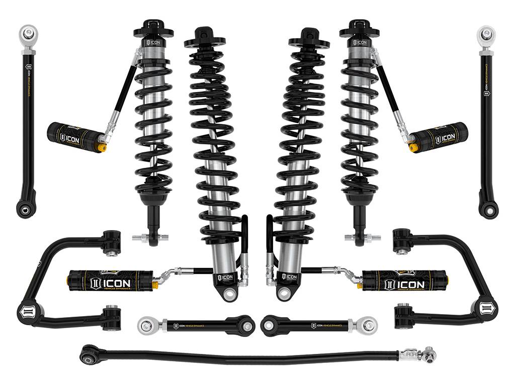 To accommodate the increased travel and lift height afforded by the ICON Coilovers, this Stage 7 kit comes with Tubular Upper Control Arms which provide caster correction and feature our patented Delta Joint PRO, which allows for up to 90-degrees freedom of movement. Stage 7 also includes the complete tubular rear link kit including upper links and ICON's Adjustable Rear Track Bar. The added upper links have been designed for clearance from the fuel tank during maximum articulation and feature greaseless bushings and massive FK rod ends just like the lower links. The Adjustable Track Bar also features our dual-durometer greaseless bushing and an FK Rod End, as well as on-vehicle adjustability for perfectly aligning the Bronco's rear axle for any lift height.
