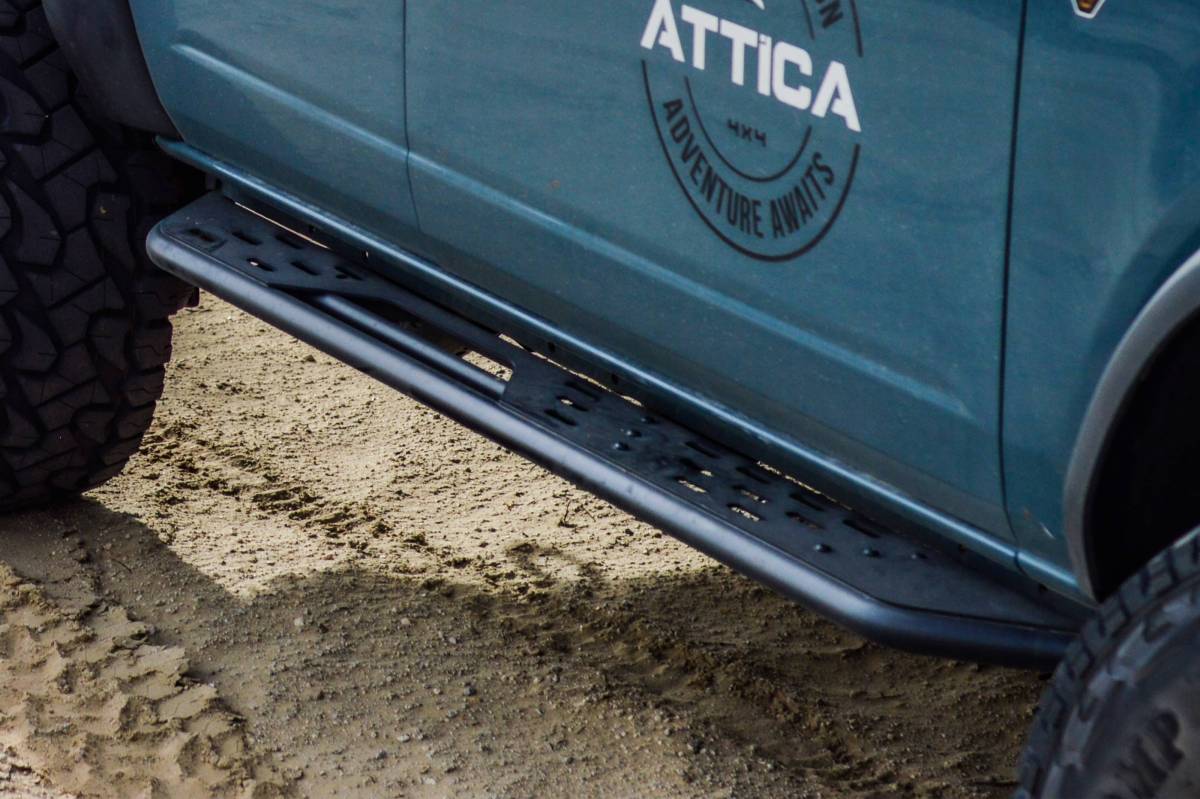 2021-2023 Ford Bronco 4DR Side Step - Black - Powder Coated - SteelYour One-Stop Shop for 4x4 Adventure: Explore our extensive collection of off-road accessories, parts, and gear at Attica4x4.com Conquer the Trails in Style: Discover our wide range of stylish and durable fender flares, bumpers, and roof racks designed for off-road enthusiasts. Enhance Your Off-Roading Experience: Find top-notch LED headlights, skid plates, and protective accessories to tackle any terrain with confidence. Customize Your Off-Road Companion: Explore our collection of Jeep parts and accessories to personalize your 4x4 vehicle to your unique style and needs. Experience Unmatched Quality: We manufactuer our products to the highest quality to ensure durability, reliability, and superior performance on your off-road journeys.